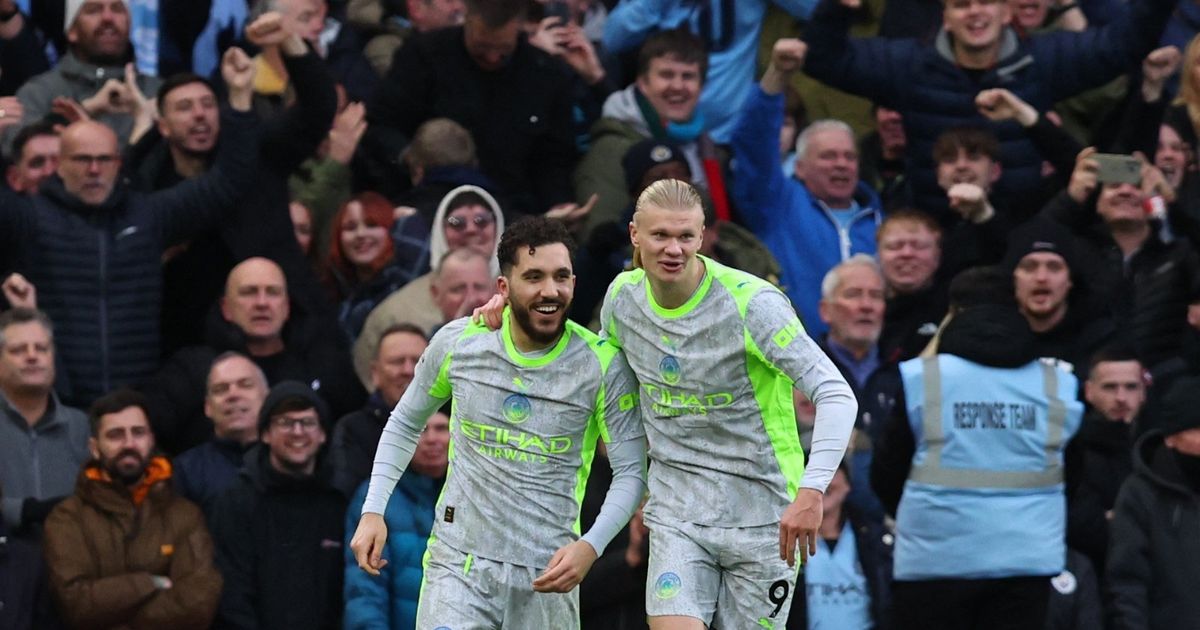 ريان شرقي يحتفل مع هالاند بعد تسجيله هدفًا لمانشستر سيتي ضد فورست – 27 ديسمبر 2025 – Reuters
