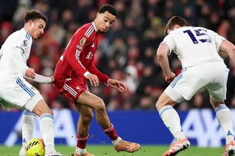 ورد ليدز جاء عبر لقطة كادت تقلب الموازين في الدقيقة 32، عندما أخطأ أليسون في تمرير الكرة بينما كان مرماه خاليًا، لتصل إلى أمبادو، الذي سدد سريعًا لكنه لم يكن لديه القوة أو الدقة اللازمتين، مما أتاح للحارس البرازيلي العودة وإنقاذ الموقف، وبعدها مباشرة، سنحت فرصة ثمينة جديدة لليفربول، عندما وصلت كرة عرضية متقنة من روبرتسون إلى فريمبونج، الذي أعادها نحو المرمى، فحاول إيكيتيكي تحويلها برأسه داخل الشباك، لكنه اكتفى بتوجيهها نحو الحارس بدلاً من التسجيل.