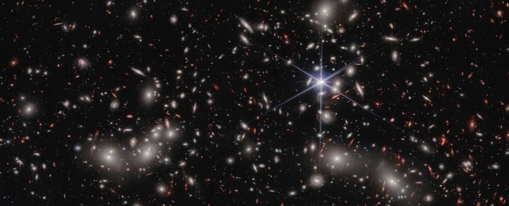 لجأ باحثون بقيادة حكيم عتيق من معهد الفيزياء الفلكية بباريس إلى بيانات تلسكوب جيمس ويب الفضائي حول تجمع مجرات يُعرف باسم أبيل 2744، مدعومة ببيانات من تلسكوب هابل. يتميز تجمع المجرات أبيل 2744 بالكثافة العالية، بحيث ينحني الزمكان حوله، مكوّنًا عدسة كونية، أي ضوء بعيد يسافر نحونا عبر هذا الزمكان يُكبر، وقد أتاح هذا للباحثين رؤية مجرات قزمة صغيرة قريبة من فجر الكون.